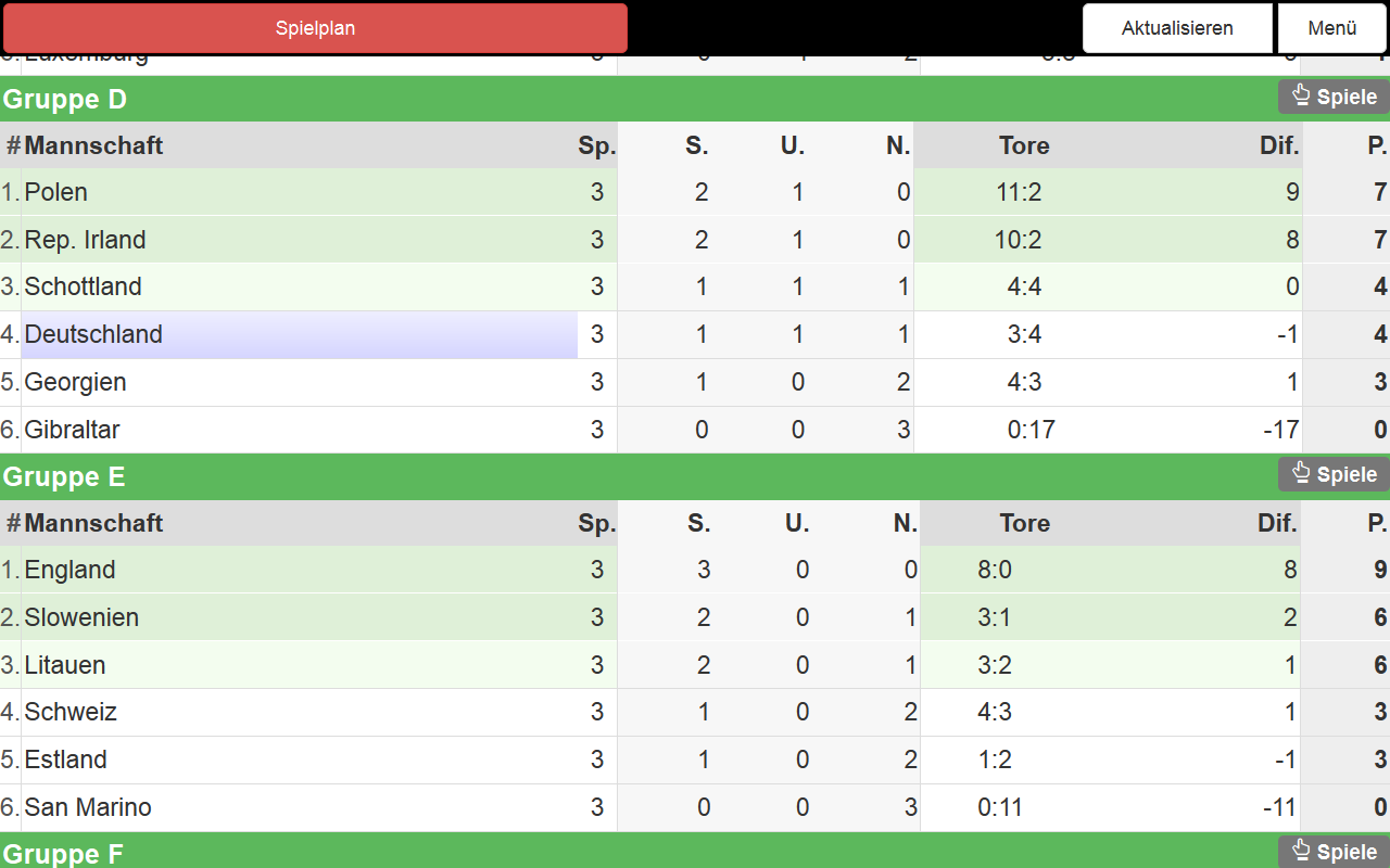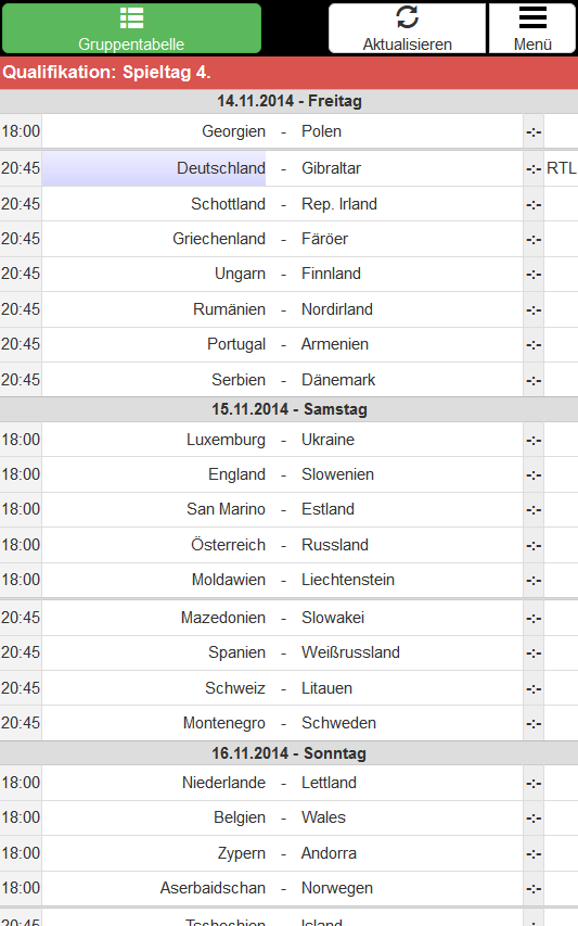 Super schnelle, übersichtliche, einfach zu bedienende spielplan app zur em 2020 2021.